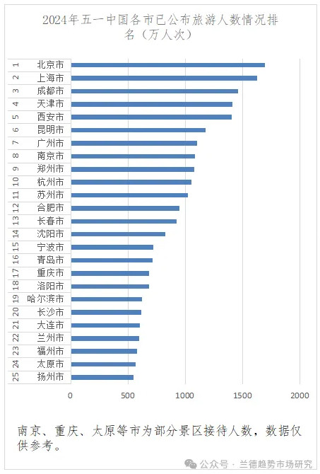 文旅部數據顯示,五一假期5天全國國內旅游出游2.95億人次。根據公布數據,2024年五一期間旅游人數省排名中,河南、安徽、貴州、四川、廣東五省旅游人數絕對值排名前五,江蘇省由于統計樣本僅限于部分景區在整個排名中暫居第八;市排名中,北京、上海、成都、天津、西安絕對值排名前五,南京市統計樣本僅限于部分景區在整個排名中暫居第八。