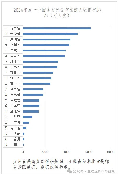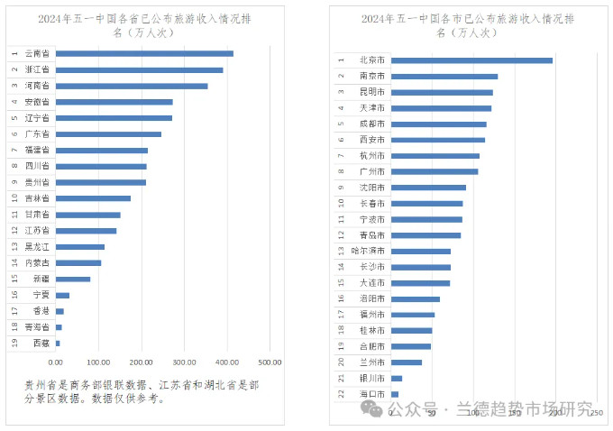 二2024年五一中國各省市旅游數據增長情況排名統計